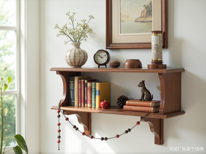 实木收纳架/置物架:墙上钉几块实木隔板,放上书籍、绿植、纪念品,墙面立刻有了温度和故事。