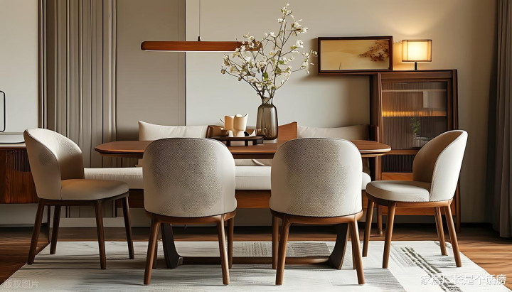 餐厅实木餐桌椅是绝配,一家人围坐吃饭,木质的包围感会让饭菜都更香。