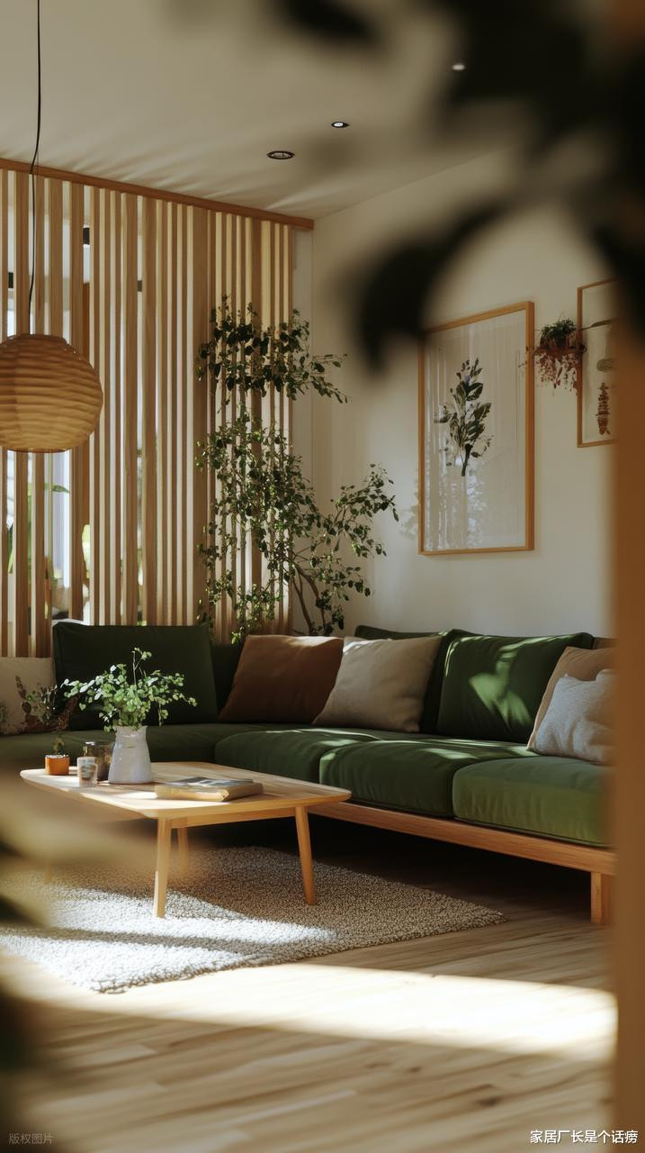 如果你家已经装修完了,感觉冰冷,那么添置温暖感材质是最快、最有效的升温方法,比如实木、棉麻布艺、绿植····而这其中实木是当之无愧的“暖场高手”。