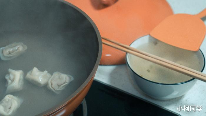 轻轻揭开锅盖,白色的蒸汽扑面而来,下锅后的馄饨不一会儿便香气四溢。