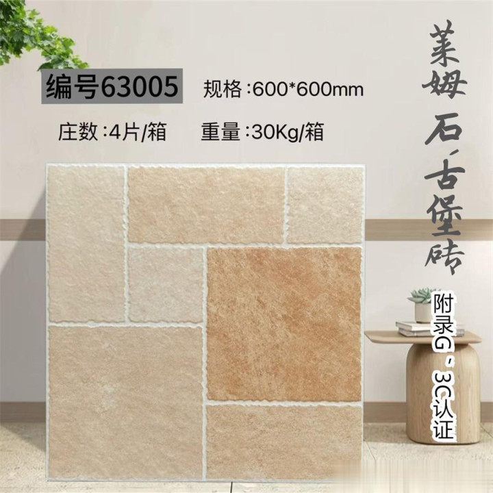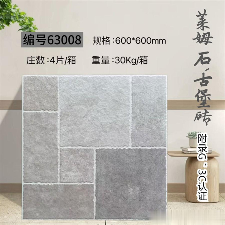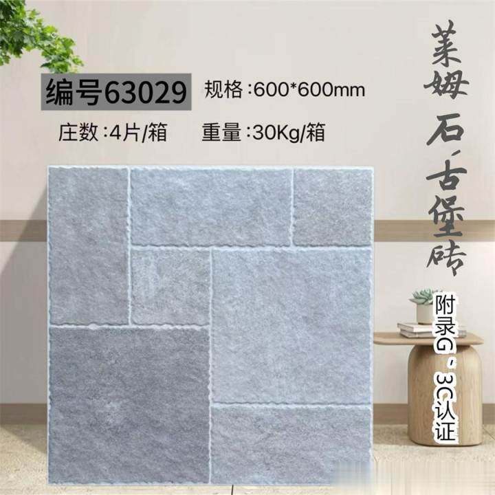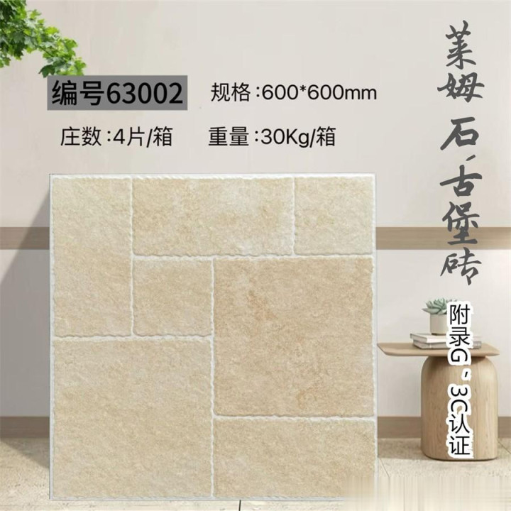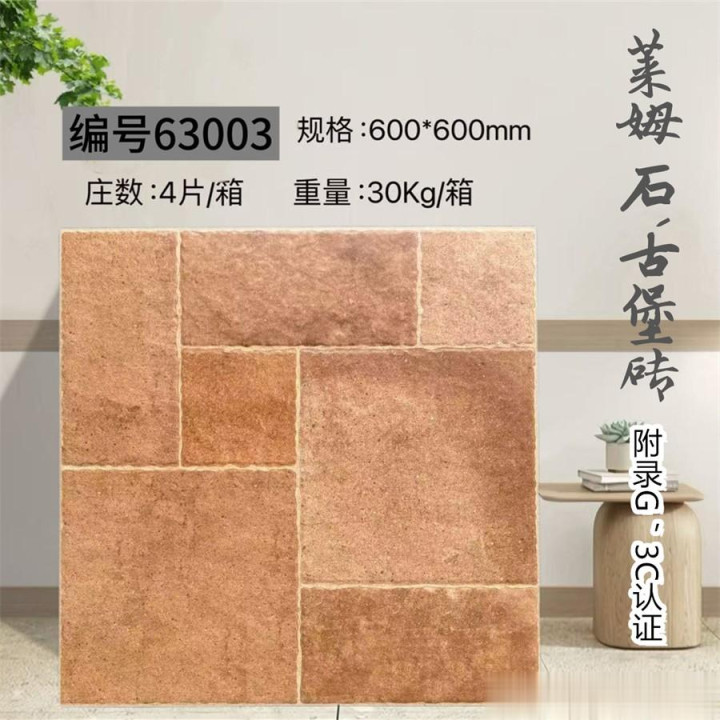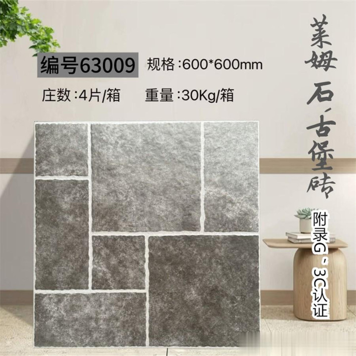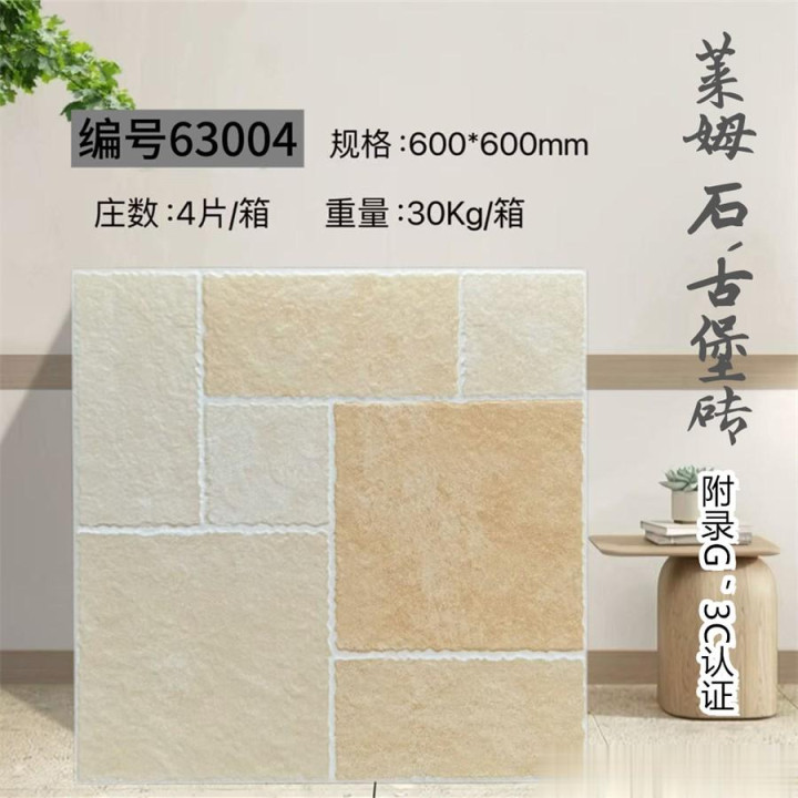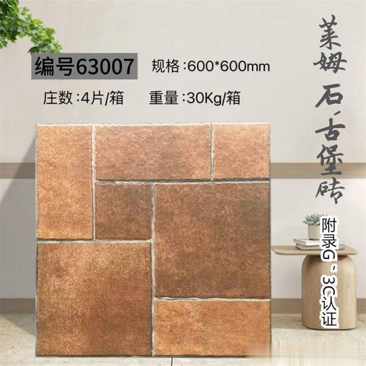 600×600mm古堡砖,以仿古工艺复刻欧洲古堡的岁月肌理,将石材的粗犷与时光的温柔熔铸成一方艺术载体。