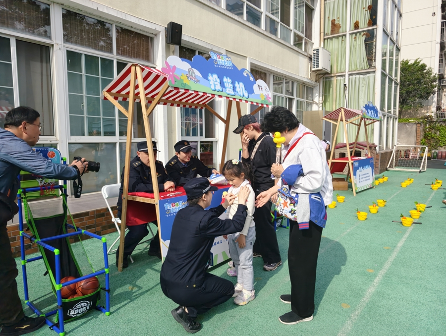 活动现场化身“法治运动嘉年华”,平日里严谨的执法人员摇身一变成为温柔又专业的“法治辅导员”,守在投篮机等幼儿运动设备旁,全程守护孩子们的闯关之旅。围绕交通安全、居家安全、防拐骗等与孩子成长息息相关的主题,他们精心设计了一系列趣味问答,每一个问题都直击家长最关心的安全痛点。