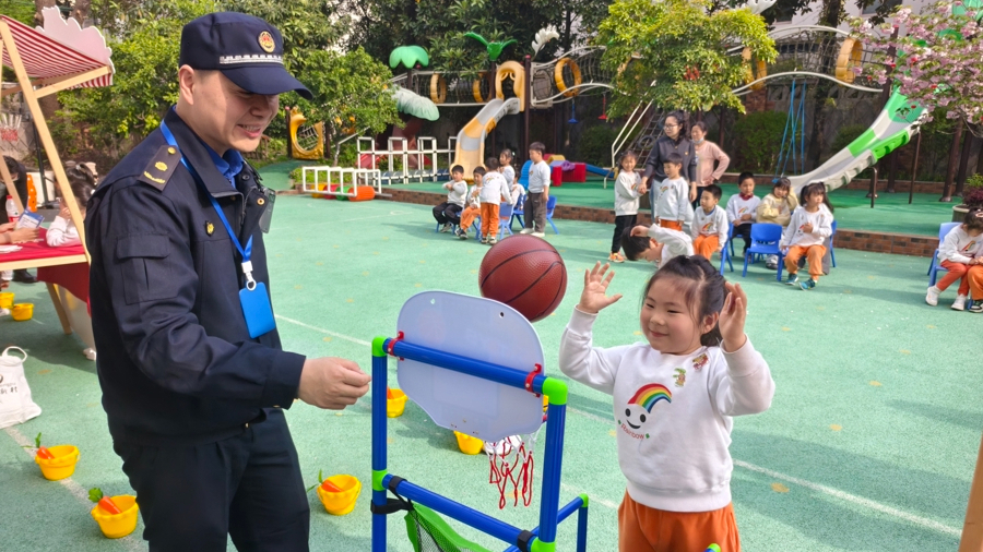 “不能开门!”“我不去!”灵博幼儿园的操场上,稚嫩的童声此起彼伏,伴随着投篮命中的欢呼声,一场“法治大冒险”正在火热进行中。近日,彭浦新村街道综合行政执法队走进校园,把枯燥的安全法治知识藏进趣味运动里,让托班到大班的萌娃们在闯关玩乐中,轻松解锁人生第一堂法治启蒙课。