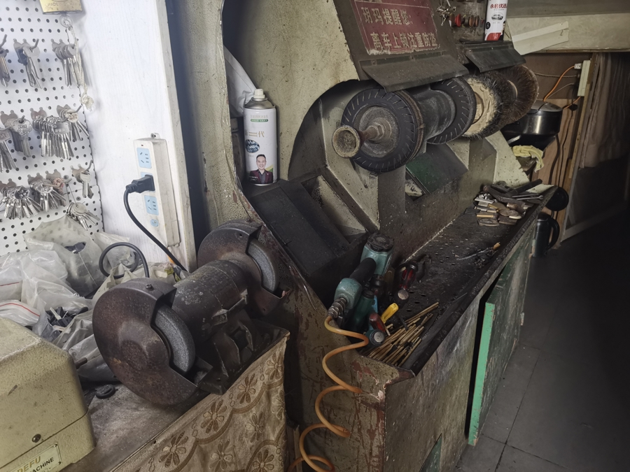 作为最早一批锁匠,陆万香在手艺传承中也见证了时代的变迁。“早年配钥匙全靠锉刀,需要手工一点点打磨。”他回忆道,“先裁剪一块铁皮,画好图样,再按齿痕深浅手工打磨,做一把钥匙要三四个小时。”如今,电动机械工具让配钥匙的效率极大提升,“一把钥匙也就几分钟,快的话只要十秒钟。”